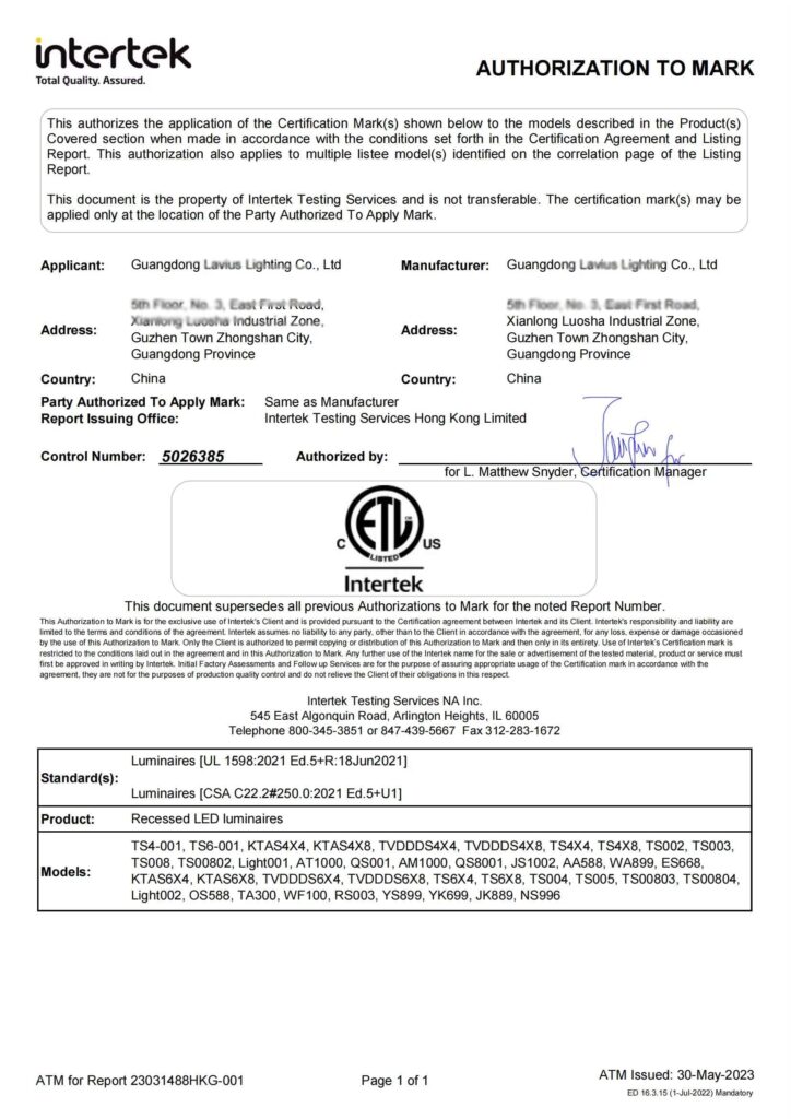 - Intertek-audited quality control system